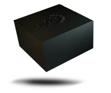 Unique and handmade high quality packaging made with intaglio and gold printing.